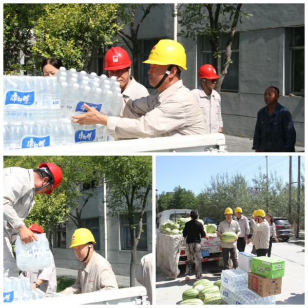 高溫如虎,關(guān)愛似海。集團(tuán)公司黨委副書記尚興和其他領(lǐng)導(dǎo)把西瓜、飲料、茶葉等慰問品送到一線員工手中,送上集團(tuán)公司黨委對一線員工的深切關(guān)愛,員工們對集團(tuán)公司黨委的深切關(guān)懷深表感謝,戰(zhàn)高溫、斗酷暑、保安全的信心倍增。
