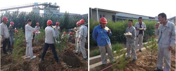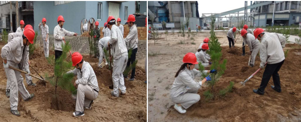 勞動(dòng)過(guò)程中,領(lǐng)導(dǎo)處處帶頭,員工們熱情高漲,選樹(shù)苗、挖樹(shù)坑、填底土、種樹(shù)、澆水、修剪樹(shù)枝,干勁十足,整個(gè)廠區(qū)變得熱鬧起來(lái)。