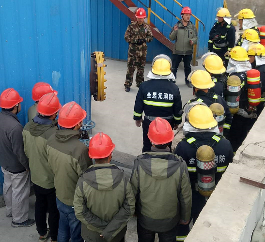 演練結(jié)束后由鹽業(yè)公司安全管理人員組織園區(qū)消防中隊(duì)與廣拓能源保衛(wèi)科警消班對(duì)鹽業(yè)公司油庫內(nèi)部布局、消防設(shè)施、設(shè)備及工藝管路、油庫儲(chǔ)量等進(jìn)行參觀、講解,同時(shí)與園區(qū)消防中隊(duì)人員就鹽業(yè)公司消防措施進(jìn)行交流。