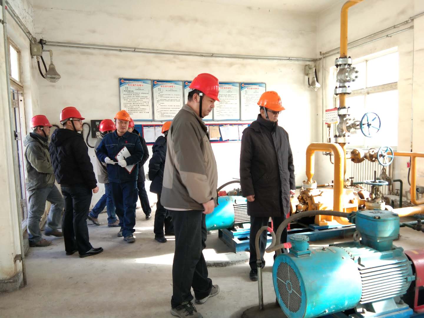 由原州區(qū)安監(jiān)與環(huán)保局副局長海濱帶隊,鹽業(yè)公司副經(jīng)理張建東等陪同,對我公司燃油泵房、氨水罐區(qū)、酸堿罐區(qū)等關(guān)鍵裝置、重點部位及檢維修現(xiàn)場進行了實地查看與指導。