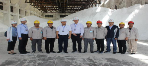 白鴻一行先后到興昊永勝鹽業(yè)公司鹽庫(kù)、鹽銷(xiāo)裝置、熱力裝置、企業(yè)文化展廳等地進(jìn)行實(shí)地調(diào)研,并在鹽庫(kù)進(jìn)行了合影留念。