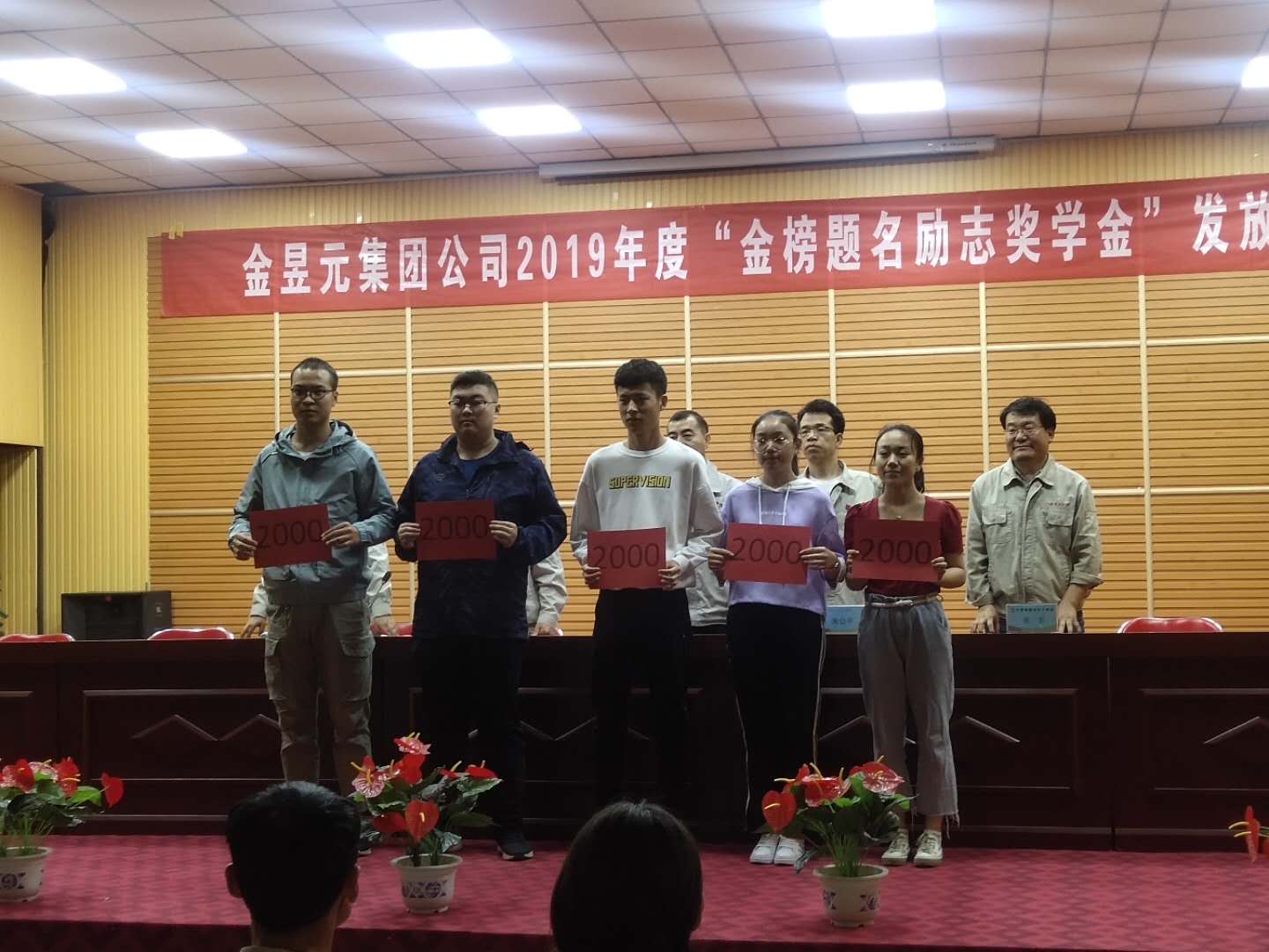 2019年8月23日,集團公司領(lǐng)導(dǎo)為2019年度金昱元的職工子女考取一、二本院校。發(fā)放“金榜題名勵志”獎學(xué)金,此次活動鼓勵了全體金昱元職工,學(xué)習(xí)這些父母培養(yǎng)優(yōu)秀子女的經(jīng)驗,同時,此大會能為培養(yǎng)出優(yōu)秀的兒女的父母表示祝賀。