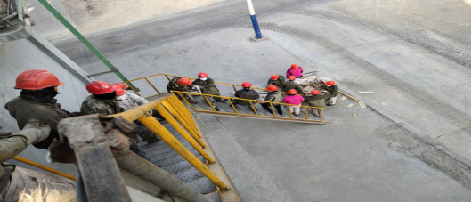 2月19日早上8點動工挖補,到當日下午19:18回轉(zhuǎn)窯點火升溫,全體管理人員、成品裝置維修工人以及回轉(zhuǎn)窯系統(tǒng)全體在崗工人,在進入檢修作業(yè)狀態(tài)的那一刻起,一會兒走入窯內(nèi),熱氣撲面,嚴肅、緊張的計算和規(guī)劃,一會兒生產(chǎn)科科長張振忠、成品裝置裝置長帶頭掄動著鐵錘,工友們或蹲著、或扶著支架,每個人都在揮汗如雨的忙碌著,淺綠色、白色工服上斑斑點點不一的顏色見證著他們流下的每一滴汗水。