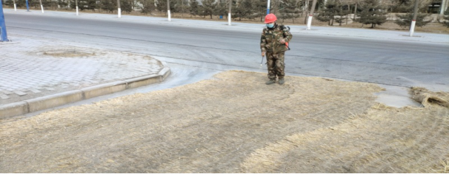 在園區(qū)南門,面對(duì)寒風(fēng),他們從容不迫,是責(zé)任,更是忠誠(chéng)的奉獻(xiàn)。當(dāng)日截止下午17時(shí)整,他們檢測(cè)、消毒、登記車輛53輛,人員53人,車輛正常,人員體溫均在正常范圍。