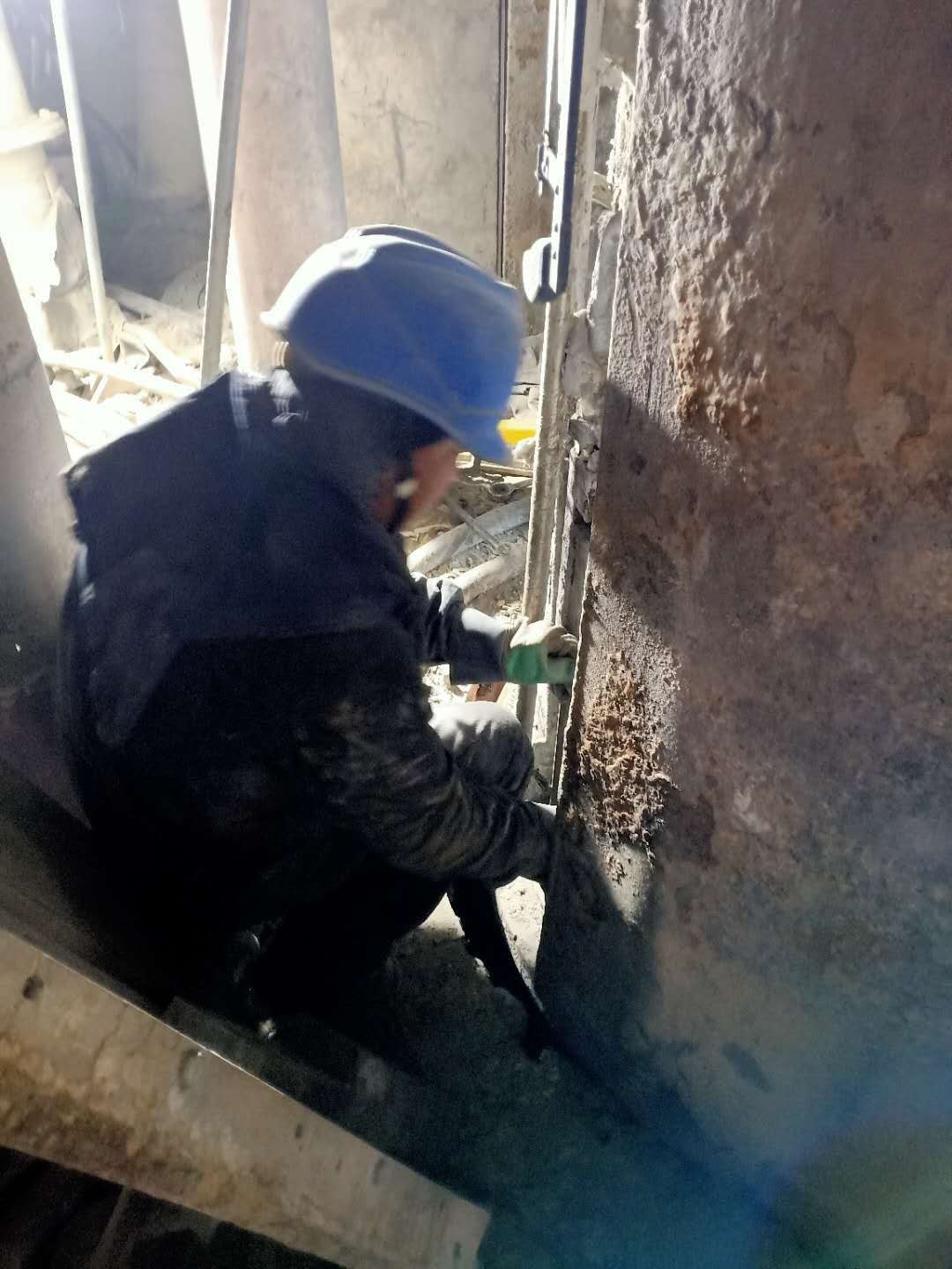 走進(jìn)電石爐檢修現(xiàn)場,參與檢修的同事們或蹲或站,手上不停的忙碌著。管理人員放棄休息堅守檢修現(xiàn)場,確保現(xiàn)場無違章作業(yè)現(xiàn)象。狹小的檢修空間,一個人蹲在那兒來回動一下都有點困難,可維修工絲毫不受影響,專注的眼神緊盯手中的檢修工具,不允許自己出一丁點兒差錯。
