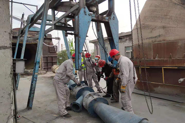 團(tuán)隊(duì)是什么,是為了實(shí)現(xiàn)一個(gè)共同的目標(biāo)而集合起來(lái)的人。 任何一個(gè)人的力量都是渺小的,只有融入團(tuán)隊(duì),只有與團(tuán)隊(duì)一起奮斗,勁往一處使,你才能實(shí)現(xiàn)個(gè)人價(jià)值的最大化,你才能成就自己的卓越!伴隨副總經(jīng)理一聲令下,所有人員喊著豪邁的口號(hào),配合吊機(jī)的力臂推動(dòng)著奇重?zé)o比的噴煤管一點(diǎn)一點(diǎn)的前行。又一會(huì)功夫?qū)⒒剞D(zhuǎn)窯門緩緩調(diào)至檢修現(xiàn)場(chǎng)安全的位置。