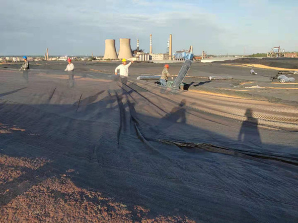 由于公司原料堆場原料使用造成的部分土地裸露,造成揚塵污染,治風(fēng)沙、阻揚塵這項工作迫在眉睫;八月秋深,狂風(fēng)怒號,風(fēng)卷走了手中的防塵網(wǎng),天空烏云黑的像墨天色陰沉迷蒙,空曠的型砂、粘土堆場風(fēng)呼呼的吹著,任憑它的怎么肆虐卻擊退不了職工們工作的熱情,瞧他們單膝蓋在潮濕的泥土上細心的用鐵絲鏈接著每個接口。男職工展現(xiàn)大力水手的魅力,兩人一卷,一人一卷有序的擺放在裸露的土地中央,女同事也不甘示弱拆開整卷防塵網(wǎng)整齊的鋪在砂石頂部,大家喊著整齊的口號,經(jīng)過一早上不懈努力,就將整個原料場地覆蓋完畢。抑制滿天風(fēng)沙的場景,也保存了大量的原料。