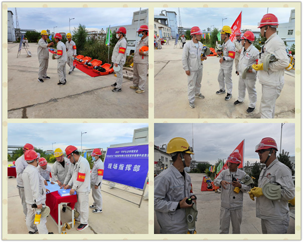 “報(bào)告總指揮,各演練部門(mén)準(zhǔn)備完畢,氯乙烯球罐單體泄漏應(yīng)急演練是否開(kāi)始!薄伴_(kāi)始!”隨著演練總指揮、片區(qū)副總經(jīng)理、廣拓能源總經(jīng)理賈存富的一聲令下,應(yīng)急演練正式開(kāi)始!北敬窝菥氃O(shè)定為一般突發(fā)事件應(yīng)急響應(yīng),演練內(nèi)容是:廣拓能源有限公司廢酸處理稀硫酸罐排污閥泄露,由于稀硫酸泄漏量較大,啟動(dòng)突發(fā)應(yīng)急預(yù)案。主要演練現(xiàn)場(chǎng)警戒、人員撤離、筑壩攔截預(yù)防稀硫酸外溢、危險(xiǎn)廢物收集。