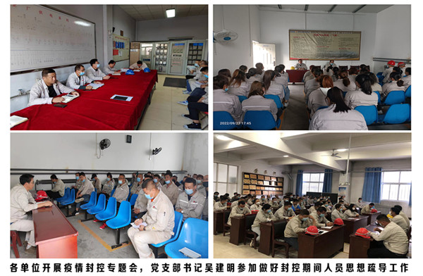 自疫情暴發(fā)以來,公司高度重視,按照集團(tuán)公司于9月23日下發(fā)《關(guān)于全面做好疫情防控的通知》,9月26日青銅峽片區(qū)下發(fā)《青銅峽片區(qū)疫情防控補(bǔ)充要求》,馬上嚴(yán)格執(zhí)行疫情防控工作。能源化學(xué)公司綜合科劃定責(zé)任區(qū)落實到個人,嚴(yán)格做好單身樓、公寓樓、辦公樓、餐廳消毒滅殺工作;嚴(yán)格做好全員健康碼、行程碼兩碼查驗工作;嚴(yán)格做好每天疫情防控統(tǒng)計上報工作(人員外出返青、外來人員入青以及員工居家隔離動態(tài)變化情況);嚴(yán)格做好餐廳消毒、人員測溫、環(huán)境衛(wèi)生、食品安全、安全用電工作;嚴(yán)格監(jiān)督管理禁止人員聚眾賭博和班前酗酒;嚴(yán)格做好澡堂管理工作早上8:30至晚上8:00全天供應(yīng)熱水,做好疫情防控和后勤保障工作;黨支部積極號召黨員做好志愿者,發(fā)揮黨員先鋒作用做好職工思想疏導(dǎo)工作。