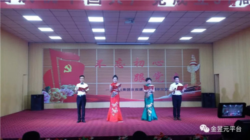 會后,以“不忘初心跟黨走”為主題,舉辦了慶祝建黨97周年文藝演出,演出圍繞“頌歌獻給黨”這一主要演出內容,以歌舞、大合唱、詩朗誦、四重唱為主要表現形式,還自編創(chuàng)作了小品《我想入黨》,音樂快板《幸福金昱元》,營造了歌頌黨、歌頌人民、歌頌改革開放和企業(yè)發(fā)展取得的偉大成就,暢想新時代、中國夢。