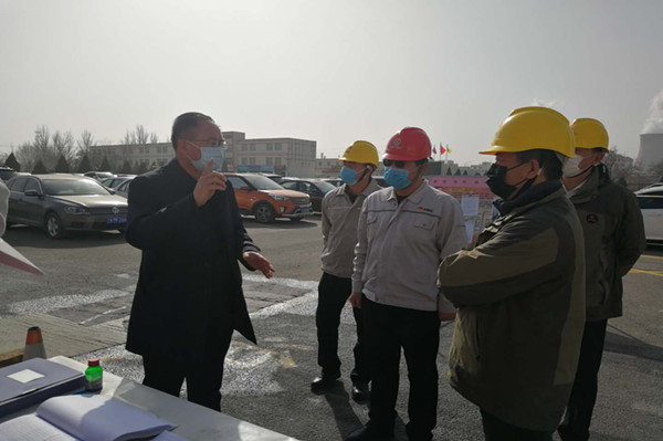 金永靈市長按常規(guī)程序進行測量體溫和登記信息,并翻閱出入大門人員信息登記臺賬。他詳細了解了集團公司疫情防控工作,總裁葉森和黨委副書記兼工會主席王立軍逐一回答。