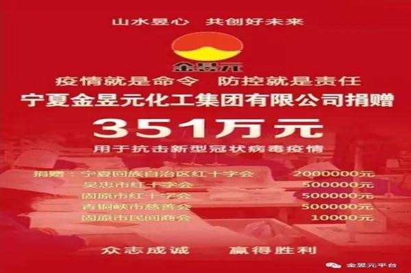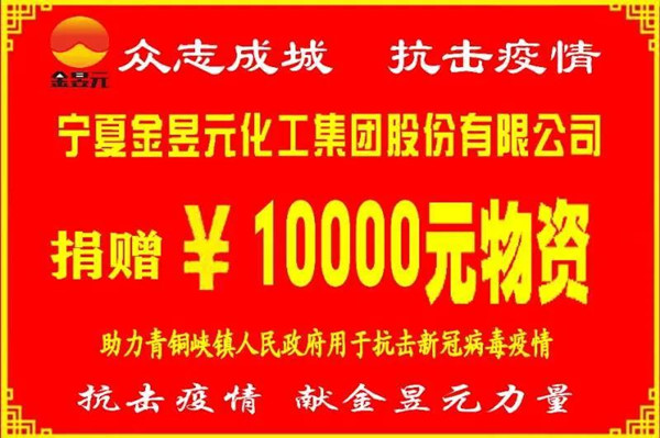 面對(duì)疫情,我們每個(gè)人都在盡自己最大的努力,金昱元也不例外。就如董事長代良云所說:“企業(yè)做得越大,就必然要去承擔(dān)更大的社會(huì)責(zé)任,創(chuàng)造更大的社會(huì)價(jià)值!苯痍旁瘓F(tuán)也是這樣做的,疫情當(dāng)前,金昱元集團(tuán)用實(shí)際行動(dòng)踐行社會(huì)責(zé)任和使命擔(dān)當(dāng),向自治區(qū)紅十字會(huì)、吳忠市紅十字、固原市紅十字會(huì)、青銅峽市慈善會(huì)、青銅峽市邵剛鎮(zhèn)、青銅峽鎮(zhèn)、固原市工業(yè)商業(yè)聯(lián)合會(huì)共捐贈(zèng)373萬元。同時(shí)無償向固原市、吳忠市、青銅峽市、靈武市、中寧縣、同心縣、涇源縣等區(qū)內(nèi)118家機(jī)關(guān)、學(xué)校、鄉(xiāng)鎮(zhèn)、企事業(yè)單位捐贈(zèng)消毒液原液近400噸。