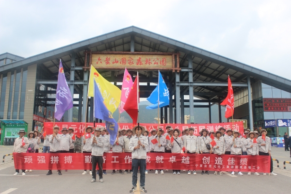 早晨8:30,參加拓展訓練人員從公司東門口集合出發(fā),乘坐旅游巴士一路歡歌,共赴六盤山森林公園,沐浴綠野清風,與六盤山水來一場久違的約會。