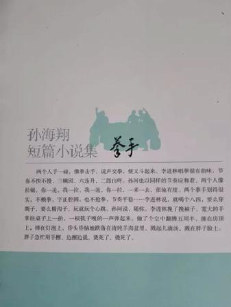 在文學(xué)日益式微的今天,仍有一些虔誠的信徒堅守在文化創(chuàng)作的金牧場。現(xiàn)供職于寧夏金昱元化工集團有限公司的孫海翔,二十年如一日始終在青銅峽市這片熱土上堅持著他的文學(xué)夢想。歷時半年,短篇小說集《拳手》終于出版。這是青銅峽市作家孫海翔出版的第一部書,共收入28篇短篇小說。